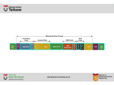 - EOF: EOF adalah singkatan dari end of frame. Berisi 7 bit resesif berurutan yang dikenal sebagai End of frame.
