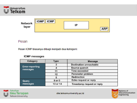 ICMP berada di lapisan IP , seperti yang ditunjukkan pada diagram di bawah.