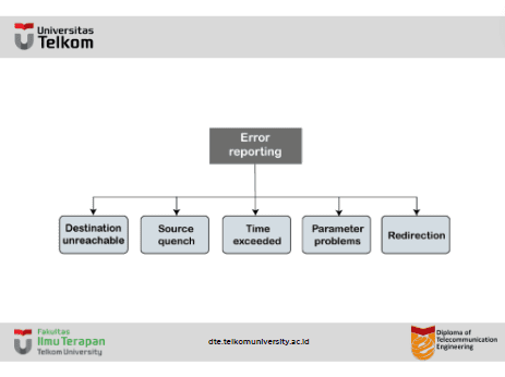 Catatan: Protokol ICMP selalu melaporkan pesan kesalahan ke sumber aslinya. Misalnya, saat pengirim mengirim pesan, jika terjadi kesalahan dalam pesan, router akan melaporkannya ke pengirim, bukan penerima, karena pengirimlah yang mengirim pesan.