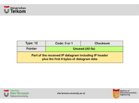 Router dan host tujuan dapat mengirim pesan masalah parameter. Pesan ini menyampaikan bahwa beberapa parameter tidak diatur dengan benar.