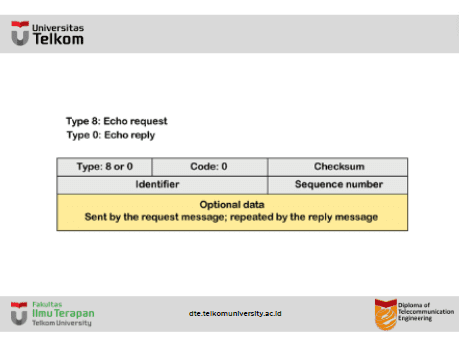 Router atau host dapat mengirim pesan echo-request. Pesan ini digunakan untuk melakukan ping ke host lain yang mengatakan “Apakah Anda masih hidup “. Jika host lain masih hidup, maka ia akan mengirim pesan echo-reply. Pesan echo-reply dikirim oleh router atau host yang menerima pesan echo-request.