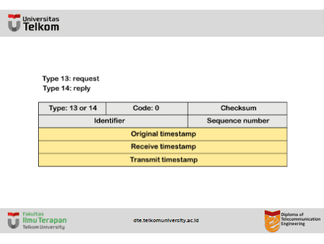 Tipe permintaan stempel waktu adalah 13, dan tipe balasan stempel waktu adalah 14. Kode tipe pesan ini adalah 0.