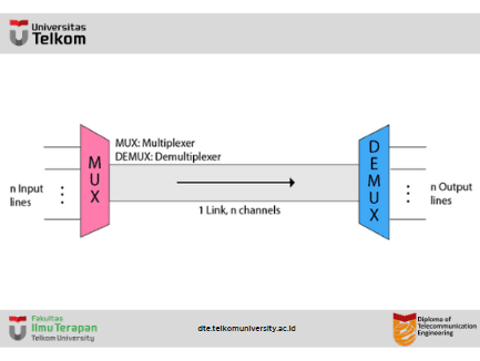 - Di sisi penerima, demultiplexer memisahkan sinyal untuk mengirimkannya ke tujuannya masing-masing.