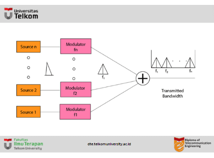 - Dengan menggunakan teknik modulasi, sinyal masukan ditransmisikan ke dalam pita frekuensi dan kemudian digabungkan untuk membentuk sinyal komposit.