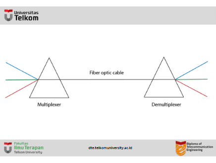 - Multiplexing Divisi Panjang Gelombang sama dengan FDM kecuali sinyal optik ditransmisikan melalui kabel serat optik.