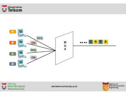 - Di TDM Asynchronous, setiap slot berisi bagian alamat yang mengidentifikasi sumber data.