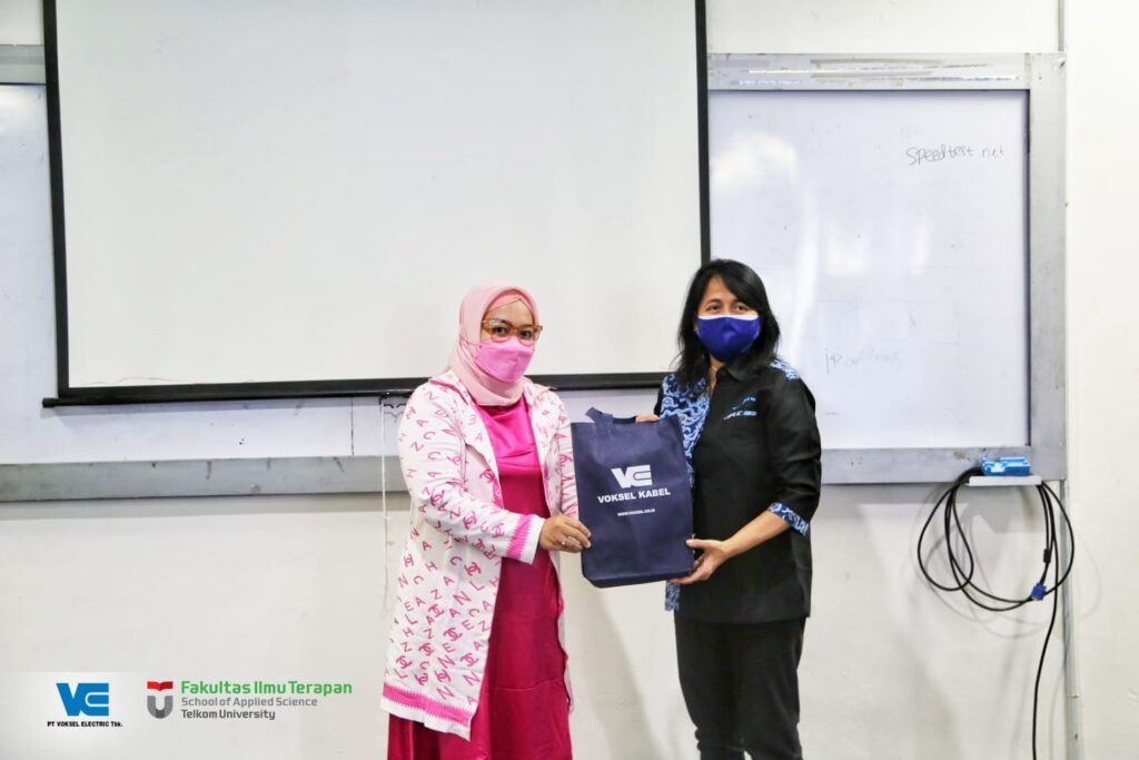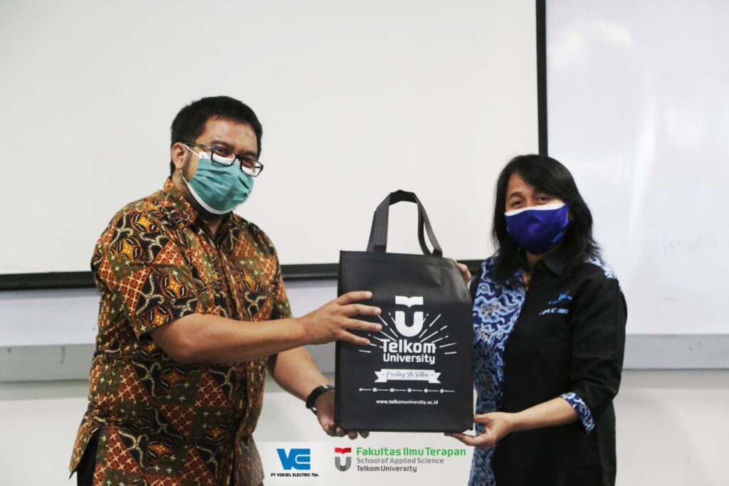 Dalam kesempatan tersebut, Dekan FIT juga menyerahkan cinderamata kepada PT. Voksel Elektrik Tbk atas partisipasinya mendukung kegiatan pembelajaran mahasiswa melalui program CSRnya.