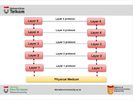 - Protokol: Ini mendefinisikan seperangkat aturan yang digunakan lapisan untuk bertukar informasi dengan entitas rekan. Aturan-aturan ini terutama berkaitan dengan isi dan urutan pesan yang digunakan.