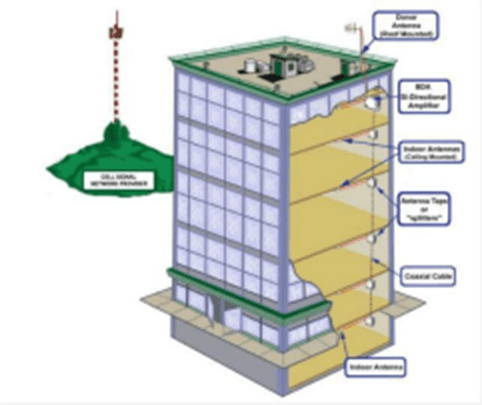DAS merupakan metode pembangunan jaringan indoor yang menggunakan skema antena yang didistribusikan ke dalam bangunan. Metode ini bertujuan untuk mendistribusikan sinyal ke setiap lantai bangunan agar mendapatkan kualitas sinyal yang baik serta menghilangkan area bad spot dan blank spot.