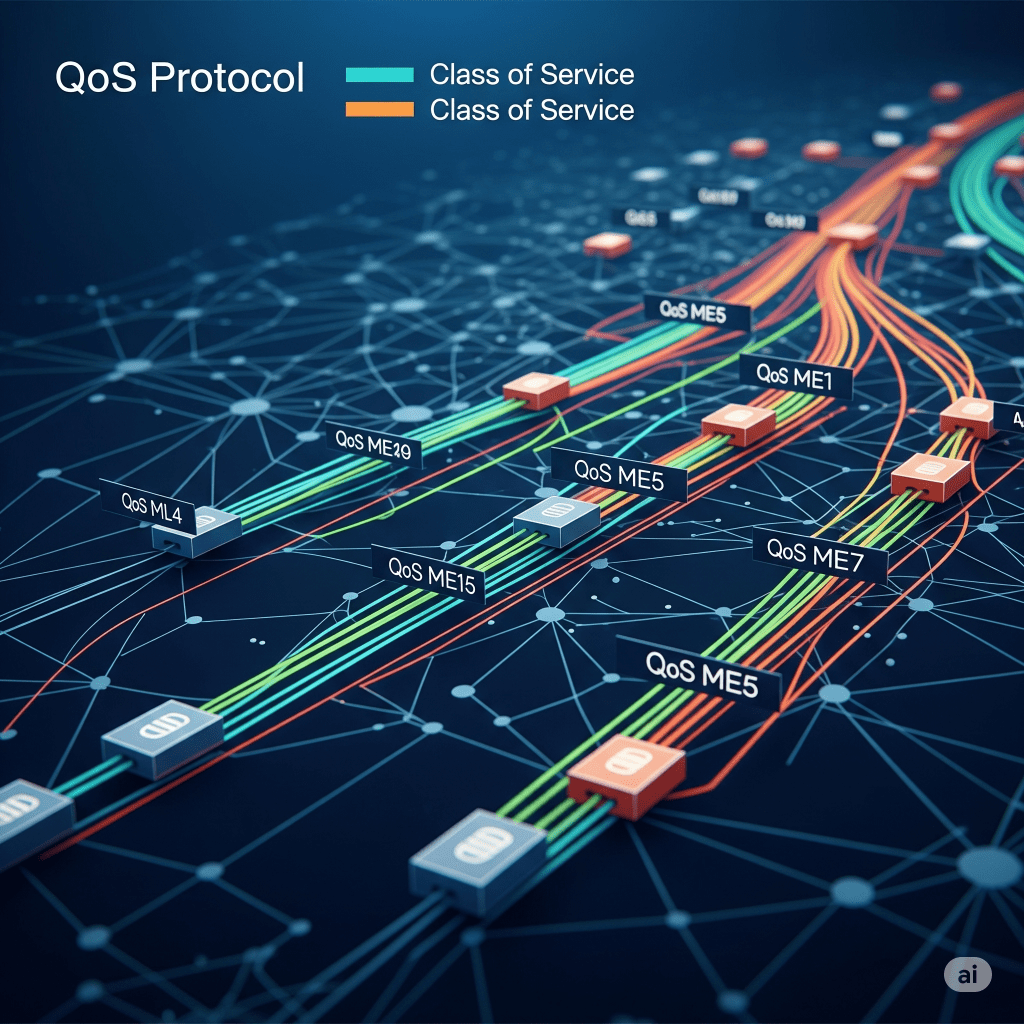 Quality of Service atau QoS adalah istilah yang digunakan untuk menggambarkan kemampuan sebuah jaringan dalam memberikan layanan yang dapat diandalkan dan memenuhi kebutuhan tertentu dari aplikasi atau pengguna. Dalam konteks jaringan, QoS mengacu pada mekanisme pengelolaan sumber daya jaringan yang bertujuan untuk mengoptimalkan performa jaringan dengan cara memberikan prioritas pada jenis lalu lintas tertentu. Hal ini sangat penting karena tidak semua data yang mengalir di jaringan memiliki tingkat urgensi dan sensitivitas yang sama terhadap delay, kehilangan paket, atau gangguan lainnya.