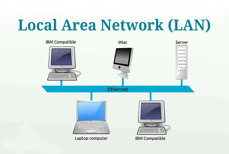 - Kabel Ethernet di kantor: Komputer-komputer dan printer di sebuah kantor sering dihubungkan menggunakan kabel Ethernet ke switch atau router yang sama, menciptakan LAN kantor.