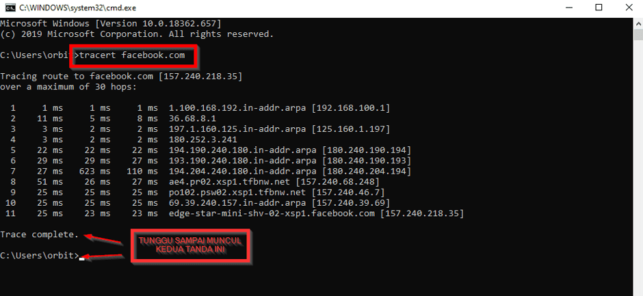 - Tanda Bintang () atau Request Timed Out: Menunjukkan packet loss atau router yang tidak merespons ping di hop tersebut.