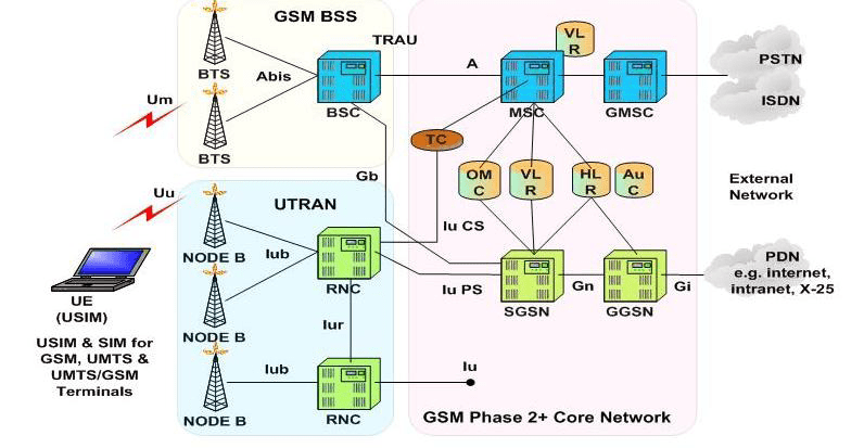 - Packet-Switched (PS) Domain: Menangani data internet melalui SGSN (Serving GPRS Support Node) dan GGSN (Gateway GPRS Support Node).