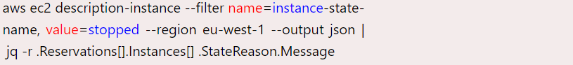 Saat Anda mengelola beberapa instansi EC2, mencantumkan instansi yang di-pause dan menampilkan alasan untuk masing-masingnya bisa menjadi masalah kecil dengan GUI standar. Contoh di bawah ini menunjukkan bagaimana menggunakan AWS CLI (dan jq) untuk melakukan ini dengan mudah:
