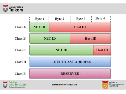 Pada diagram di atas, kita mengamati bahwa setiap kelas memiliki rentang alamat IP tertentu. Kelas alamat IP digunakan untuk menentukan jumlah bit yang digunakan dalam suatu kelas dan jumlah jaringan dan host yang tersedia di kelas tersebut.