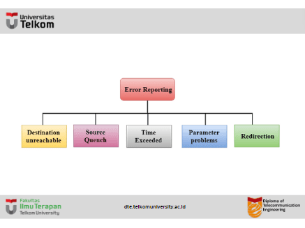 - ICMP menangani kontrol dan pesan kesalahan, namun fungsi utamanya adalah melaporkan kesalahan tetapi tidak memperbaikinya.
