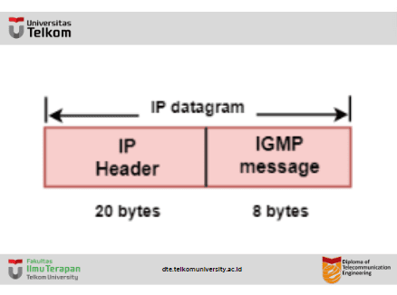 - IGMP adalah bagian dari lapisan IP, dan IGMP memiliki pesan berukuran tetap.