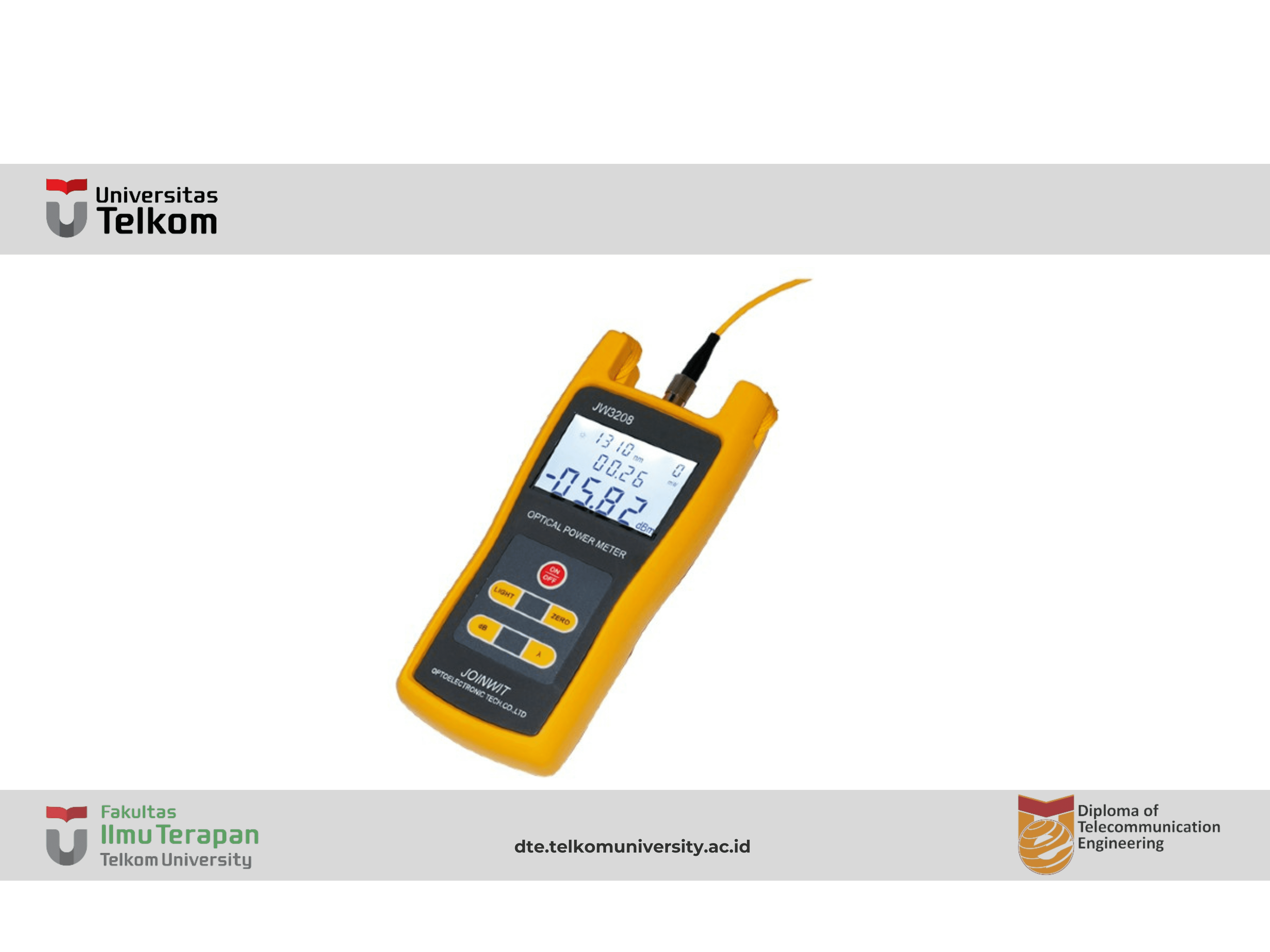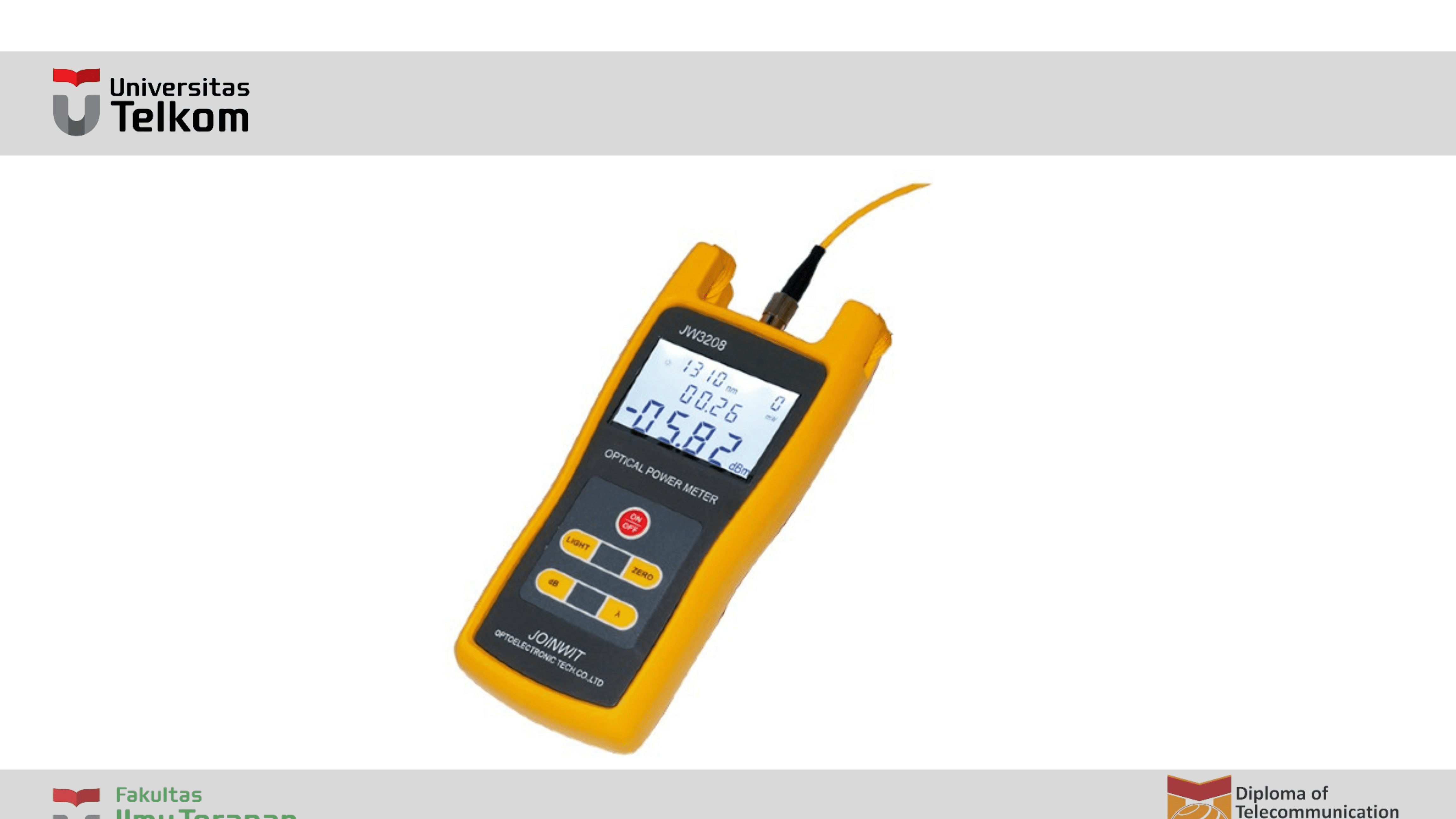 Berbagai Rentang Gelombang: Optical power meter dapat bekerja pada berbagai rentang panjang gelombang cahaya optik, termasuk infrared (IR) dan visible (VIS). Ini memungkinkan pengukuran daya pada berbagai jenis serat optik dan perangkat.