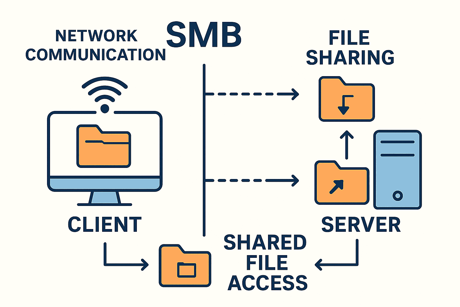 SMB beroperasi dalam model client-server dengan karakteristik “punya status” (stateful). Artinya, server SMB menyimpan informasi tentang setiap koneksi klien, termasuk file yang sedang dibuka, kunci (lock) yang dipegang, dan sesi yang aktif. Arsitektur ini memungkinkan fitur-fitur canggih seperti: