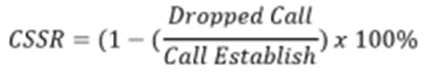CSSR adalah parameter persentase tingkat keberhasilan panggilan telepon berdasarkan kanal suara yang tersedia. Parameter ini dipengaruhi oleh ketersediaan kanal suara yang dialokasikan untuk mengetahui kesuksesan sebuah panggilan telepon. Nilai CSSR dapat diperoleh menggunakan rumus berikut.