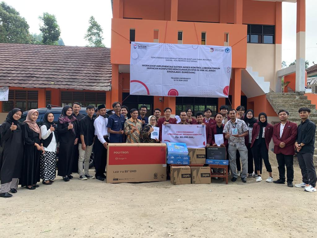 Workshop Implementasi Sistem Akses Kontrol Laboratorium Jaringan Komputer Menggunakan RFID merupakan kegiatan yang dilaksanakan oleh Tim Pengabdian Masyarakat Telkom University yang dilaksanakan pada tanggal 12 dan 13 Juni 2023 di SMK Al Amah Sindulang Sumedang. Workshop ini diikuti oleh siswa/i serta guru SMK Al Amah Sindunlang yang sangat antusias untuk meningkatkan keamanan laboratorium jaringan komputer mereka menggunakan teknologi Radio Frequency Identification (RFID) serta meningkatkan kompetensi siswa/i dan guru.
